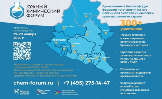 Более 400 предприятий примут участие в первом Южном химическом форуме в Краснодаре